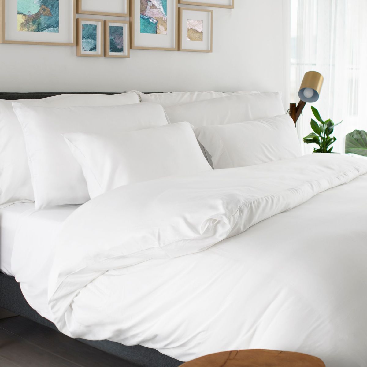 Say goodbye to sleepless nights and fall in love with dreamy-soft bedding made of viscose fabric. You’ll feel like you’re sleeping at a luxury resort in the comfort of your own home. This duvet cover features a beautiful sateen weave finish and simple button enclosure with reinforced button placket. It also comes with two pillow shams that have a Euro-envelope closure to help keep your pillow nice and secure. Sleep in nothing but bliss with Cariloha.