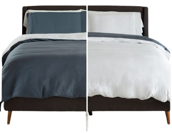 Similar to our Sateen Duvet Covers, these Reversible Color-Block Duvet Covers feature a soft sateen weave finish, made from sustainable bamboo, and simple coconut buttons to enclose your duvet with a reinforced button placket and corner ties to secure duvet insert.Read More