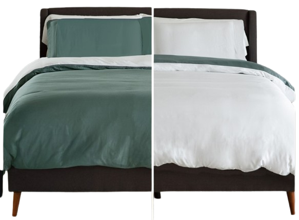 Similar to our Sateen Duvet Covers, these Reversible Color-Block Duvet Covers feature a soft sateen weave finish, made from sustainable bamboo, and simple coconut buttons to enclose your duvet with a reinforced button placket and corner ties to secure duvet insert.Read More