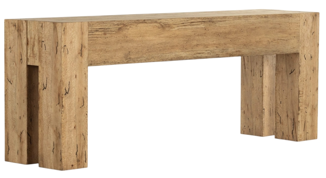 Made from thick-cut oak veneer with a faux rustic finish made to emulate wormwood oak, this low, large-scale console table features chunky squared legs and dovetail joinery detailing. A beautifully crafted piece that combines charm with functionality.Read More