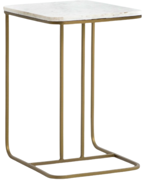 Add a pop of marble in a classic, polished white. The matte brass C-table base slides perfectly over a sofa, adding an easy surface. Its sleek, minimalist silhouette and high-quality materials make it a perfect addition to any living space, offering both practical utility and refined charm.Read More
