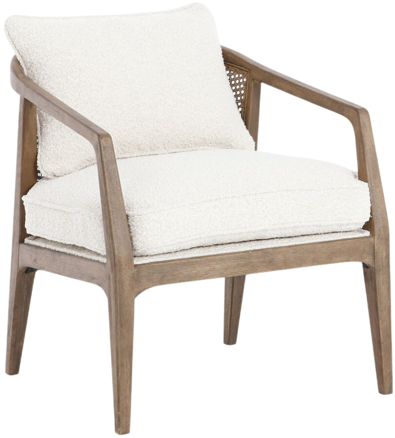 The Alexandria Accent Chair is a sophisticated and elegant piece that brings a timeless appeal to your living space. Mid-century modern inspiration with a French twist. Sleek, hand-shaped birch framing is accented by textural woven rattan back.Read More