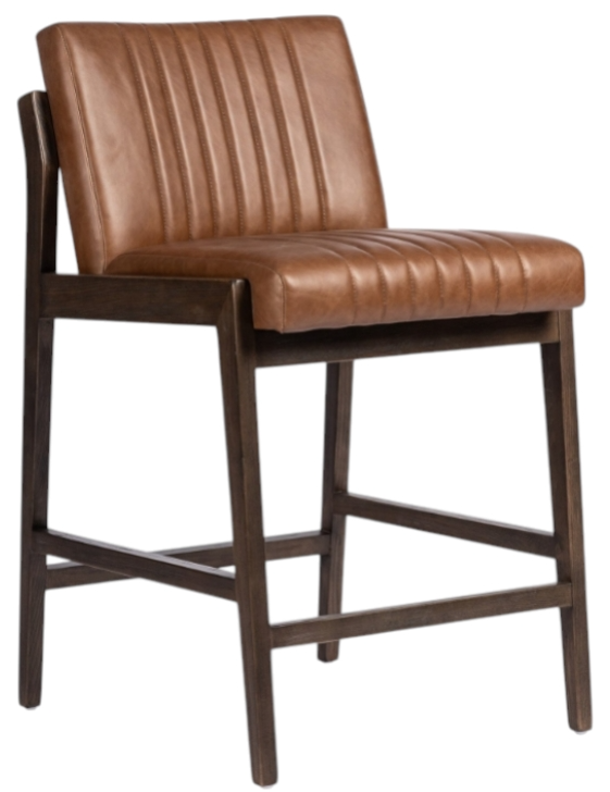 Vertical channeling and Four Hands-exclusive top-grain leather dole this Fifties-inspired counter stool new energy. Brown beech wood framing features a rear scalloped stretcher for a design-forward touch. And this will be a great fit into your home.Read More