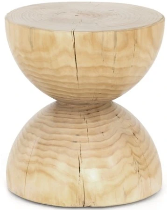 Solid natural pine fashions into an hourglass silhouette for an organic look with shapely allure. Makes for a handy extra surface solo or paired. Due to materials' natural essence, cracks are to be expected and may develop over time.Read More