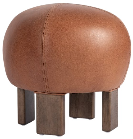 Perfect as a stool or footstool in any corner or room of the house, this petite ottoman features a vintage-inspired parawood frame and Brazilian-made leather in a light cognac hue with a soft, supple feel and rich grain structure.Read More