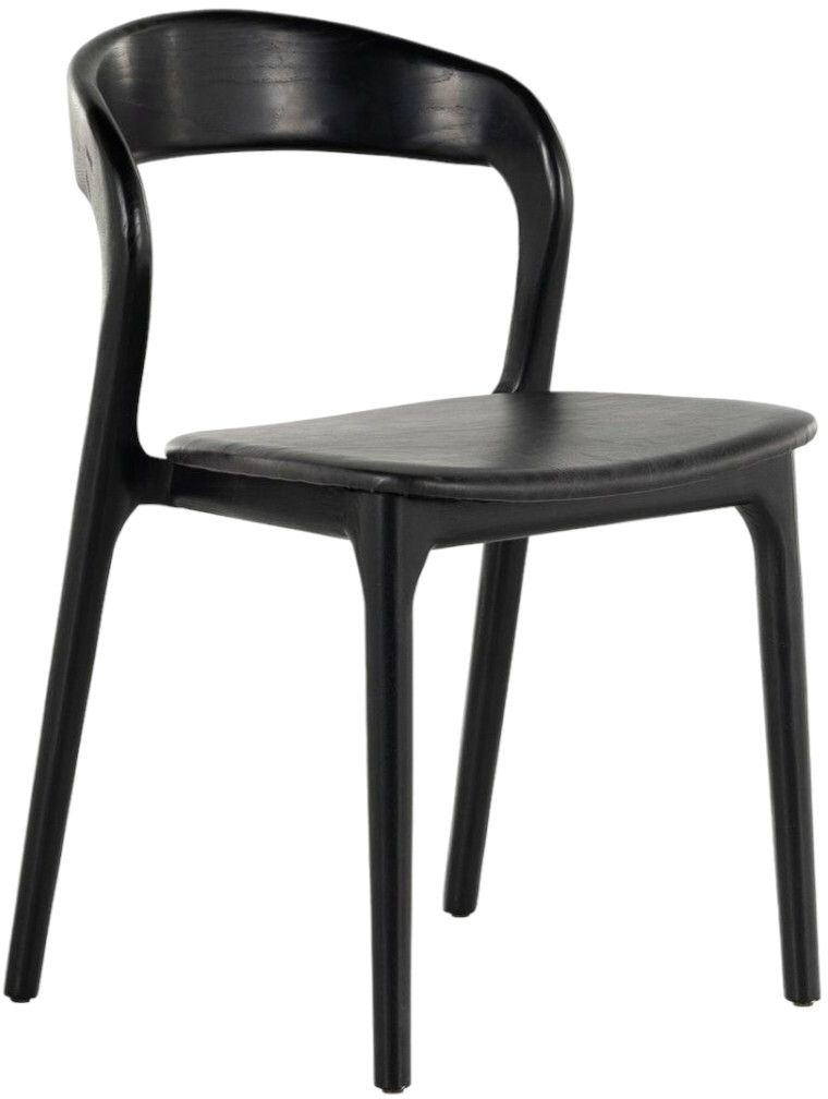 Inspired by clean, simple Scandinavian styling, solid ash forms a shapely, open frame for top-grain leather seating. Elevate your dining room design with this chair from Four Hands. Shown in Sonoma Black finish.Read More