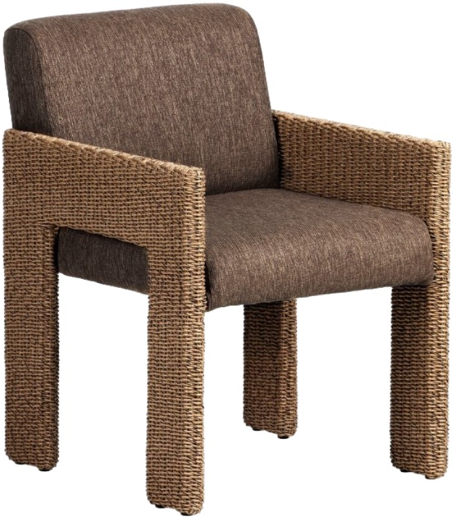 Think outside the box for outdoor dining. A structured, voluminous seating style pairs upholstery with woven legs for a two-tone look, bringing a traditional silhouette with maximum comfort. Cover or store indoors during inclement weather and when not in use.Read More
