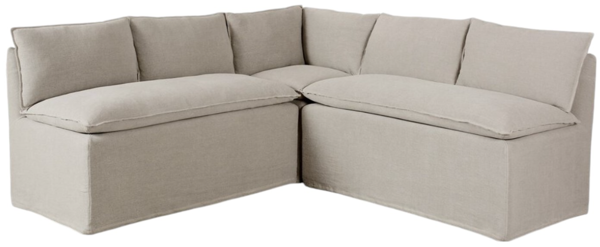 A slipcovered modular banquette offers a clean, contemporary feel with casual flexibility. Feather-blend cushioning for sink-in comfort, plus flanged top seams for a tailored look. Fully removable slipcover is machine washable and handcrafted from 100% flax/linen, bringing a loose, relaxed look to the entire piece.Read More