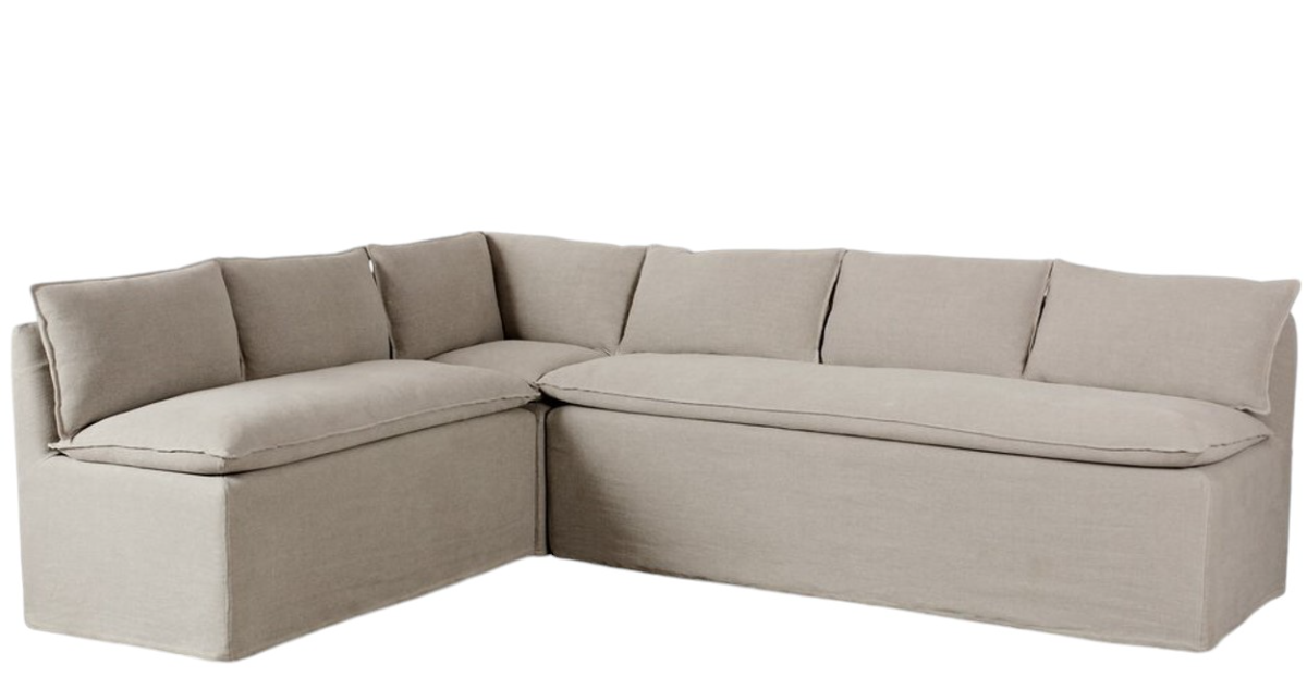 A slipcovered modular banquette offers a clean, contemporary feel with casual flexibility. Feather-blend cushioning for sink-in comfort, plus flanged top seams for a tailored look. Fully removable slipcover is machine washable and handcrafted from 100% flax/linen, bringing a loose, relaxed look to the entire piece.Read More