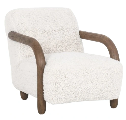 This versatile accent chair is upholstered in a faux Mongolian shearling with a textural high pile. A contrasting, chunky parawood frame hugs the seat and is wire-brushed for a warm, vintage feel.Read More