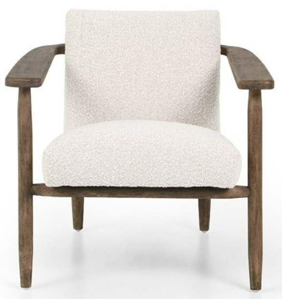 Textural cream boucle seating offers a sumptuous sit, with complementary wire-brushed parawood framing forming a slim U shape. Two posterior top-grain leather straps add a stylish finishing touch. Performance fabrics are specially created to withstand spills, stains, high traffic and wear, ensuring long-term comfort and unmatched durability.Read More