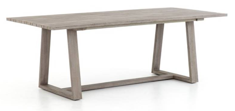 An angular base brings architectural appeal to the dining table. Planks of weathered grey teak provide plenty of tablespace, perfect for outdoor entertaining. Cover or store indoors during inclement weather and when not in use.Read More