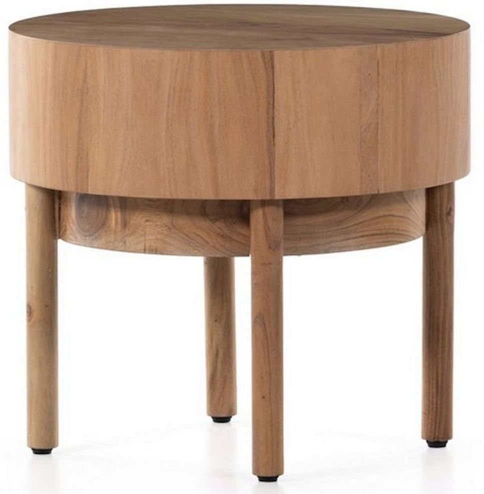 Complete your living room design with this Atmore end table from Four Hands. Shown in natural acacia finish. March to the beat of a drum-style table with nested dowel legs and solid acacia top. This end table will definitely add style to your room.Read More