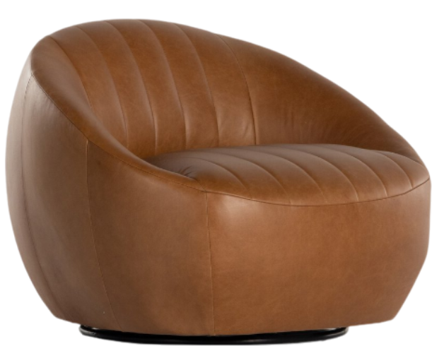 For a new spin on traditional barrel seating, tailored top-grain leather and dramatic channeling make a major style statement. Hidden 360-degree swivel adds a modern finishing touch. Sourced from one of the oldest family-owned tanneries in Italy’s Bassano del Grappa, our heirloom leather is salvaged and processed from upcycled hides featuring an abundance of natural markings, scars and color variations.Read More