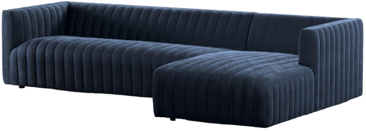 The Four Hands Augustine 2 Piece 105" Sectional with Right Arm Facing Chaise is a stylish, spacious, and comfortable seating solution. With its deep navy hue, this sectional adds sophistication and function to any room.Read More