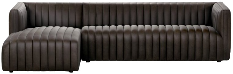 A dramatically channeled Four Hands sofa in dark top-grain leather offers a mature, clean look inspired by modern menswear. Two-piece sectional with left arm-facing chaise, perfectly sized for smaller spaces.Read More