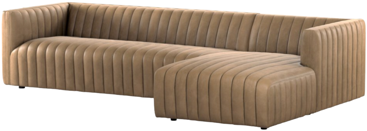 A dramatically channeled sofa wrapped in a palermo drift top grain leather creates a mature, clean look inspired by modern menswear. Two-piece sectional with right arm-facing chaise, perfectly sized for smaller spaces.Read More