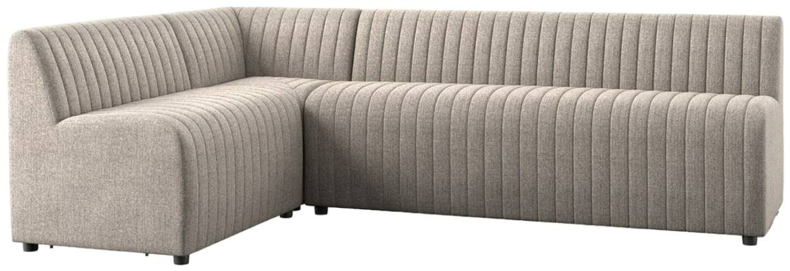 This 3-piece sectional dining banquette has tailored fabric in Orly Natural inspired by menswear's classic herringbone pattern that highlights this banquette's dramatic channeling. Option to pair with matching pieces for flexible modularity.Read More