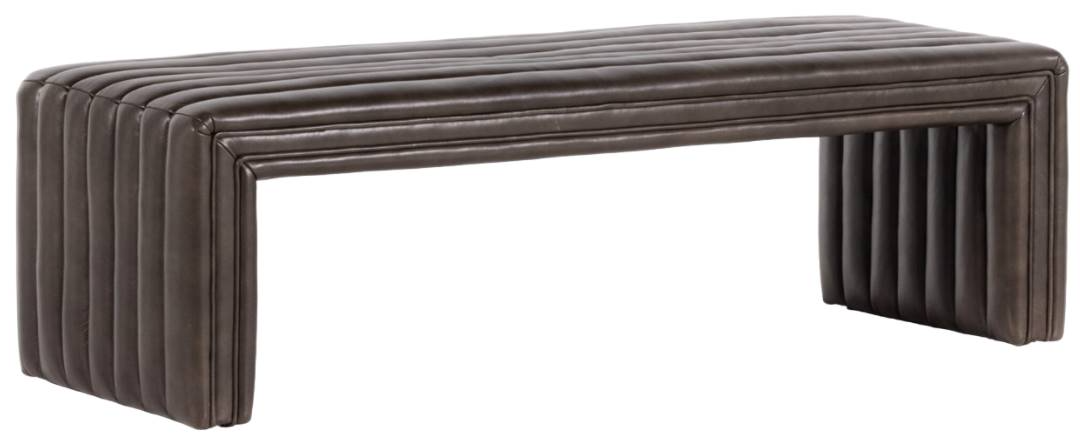 The versatile accent bench. Layer in an extra surface or added seating by way of a top-grain leather bench in a rich deep brown with dramatic channeling for great texture.Read More