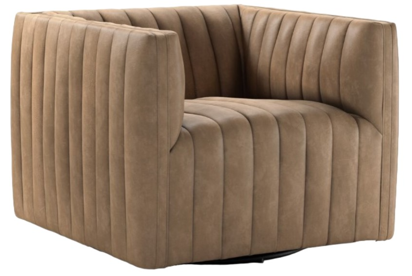 A modern take on the classic library chair, neutral seating in top-grain leather adopts dramatic channeling for trend-forward texture and sumptuous sit. A 360-swivel delivers appeal from every angle.Read More