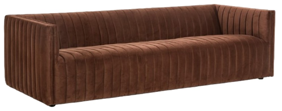 Velvety poly-blend upholstery in a rich auburn hue features dramatic channeling, adding trend-forward texture to this luxurious extended-length sofa. Its bold design and sumptuous feel make it a stylish and comfortable centerpiece for any room.Read More