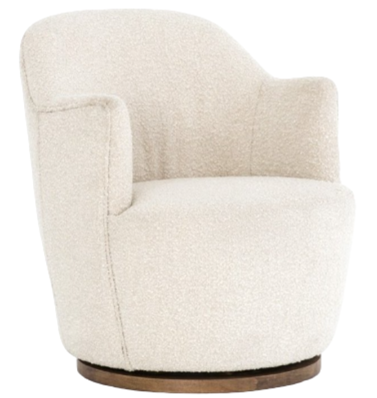 Intriguing while inviting. Drum-style seating is upholstered in a soothing and textural off-white bouclé. A 360-degree swivel base of natural parawood places a fresh spin on a feminine form. Four Hands is recognized for its use of sustainable materials, unique craftsmanship, and commitment to quality.Read More