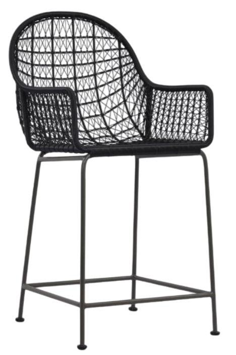 Contemporary shaping and a deep black weave transform all-weather wicker into something modern. Club-style counter seating is supported by a slim, contrasting bronzed grey-finished iron base. Cover or store indoors during inclement weather and when not in use.Read More