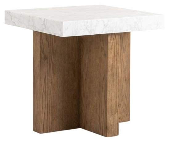 Structured lines and chunky proportions fuse for a mixed material end table of smoked oak and polished marble. It offers a convenient surface for holding items like lamps, books, or drinks, providing both utility and additional storage in living spaces.Read More