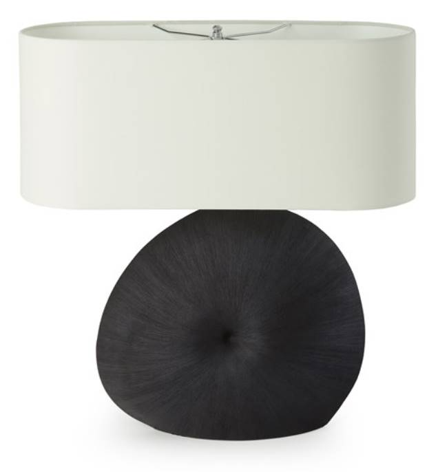 Bringing to mind found treasures washed ashore, the organic shape of this lamp base is crafted from smooth ceramic in matte black finished and topped with a linen shade for added contrast.Read More