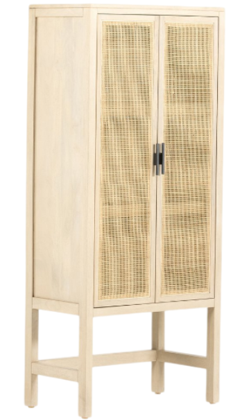 Monochromatic with a textural twist. Natural mango wood frames woven cane doors which open to reveal spacious interior storage. A simple Parsons-style base keeps things feeling open and airy. Offering ample room for organizing essentials while enhancing the overall aesthetic of the room.Read More