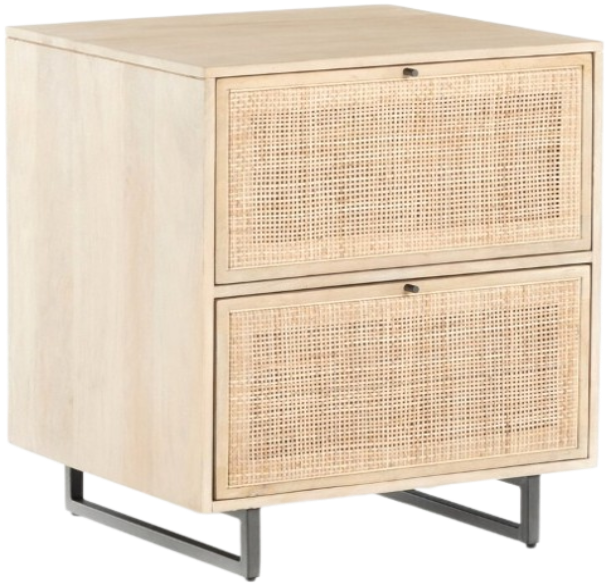 Mid-century-inspired style with an organic twist. Surrounded by mango casing, light cane weaves for a look of natural depth. Angular gunmetal-finished iron legs offer an intriguing contrast of texture and tone. Two spacious drawers for filing of important documents.Read More