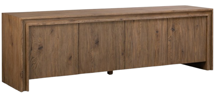 Anchored by a wide, stately frame with clever relief detail, this media console celebrates the natural beauty of oak. Push-latch doors create a clean, modern profile, placing emphasis on a warm, weathered finish.Read More