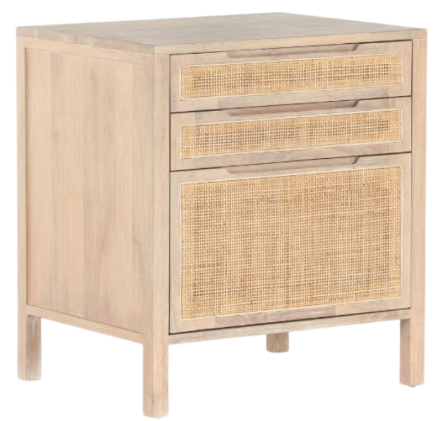 Mid-century-spirited while beautifully on trend. A clean-lined filing cabinet of white-washed mango features natural cane-covered drawer fronts, bringing storage and texture to the modern office. Sized for legal and letter-size documents. Style solo or pair with matching desk and/or credenza.Read More