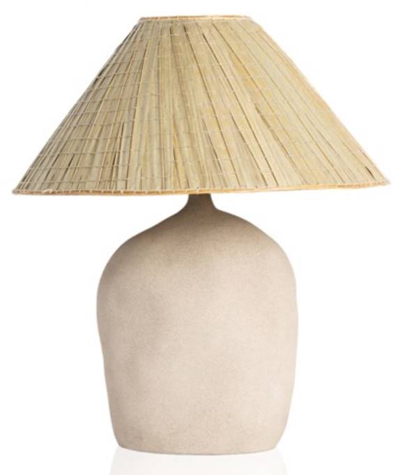 Finished in a neutral sand, a shapely talavera table lamp is topped with a natural palm shade, for a light, textural look. Elevate your room design by incorporating this table lamp into your space.Read More