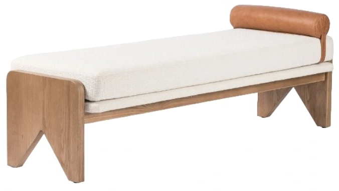 This sleek and versatile bench brings a touch of timeless elegance to any room. Crisp white performance fabric places a sensible twist on streamlined bench styling. A solid ash base with cutout sides adds a detail-driven finishing touch with midcentury vibes.Read More