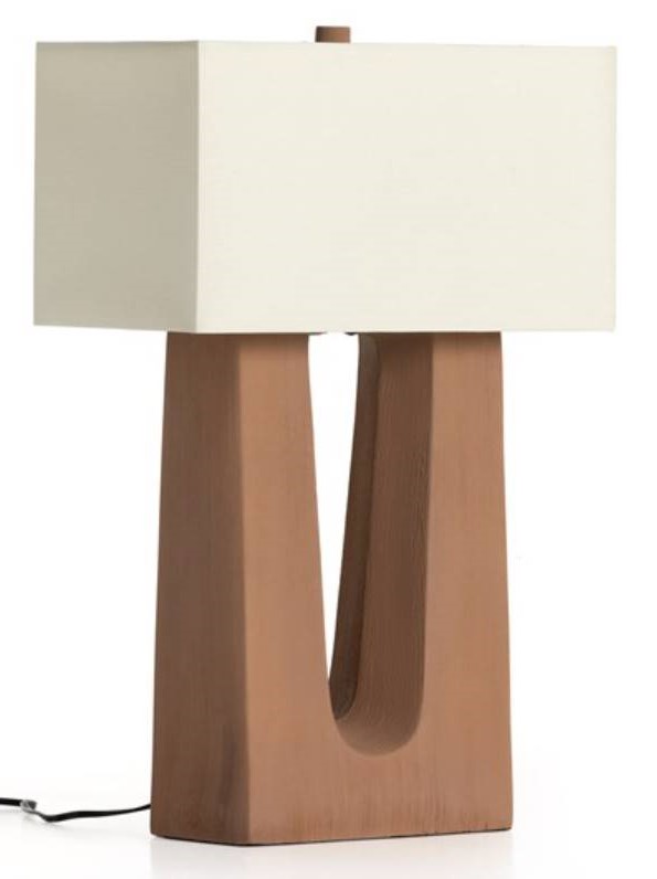 Inspired by a midcentury modern vase spotted at an antique fair just outside of Austin. Base and finial on top are crafted of ceramic in a smooth porcelain finish in terracotta. Topped with a rectangle polyester/linen shade.Read More