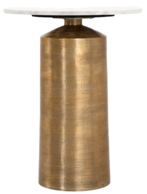 Sculptural intrigue. A dramatically scaled pedestal table features a shapely aluminum base and rounded tabletop of polished white marble. And this nightstand will be a great fit into your home.Read More
