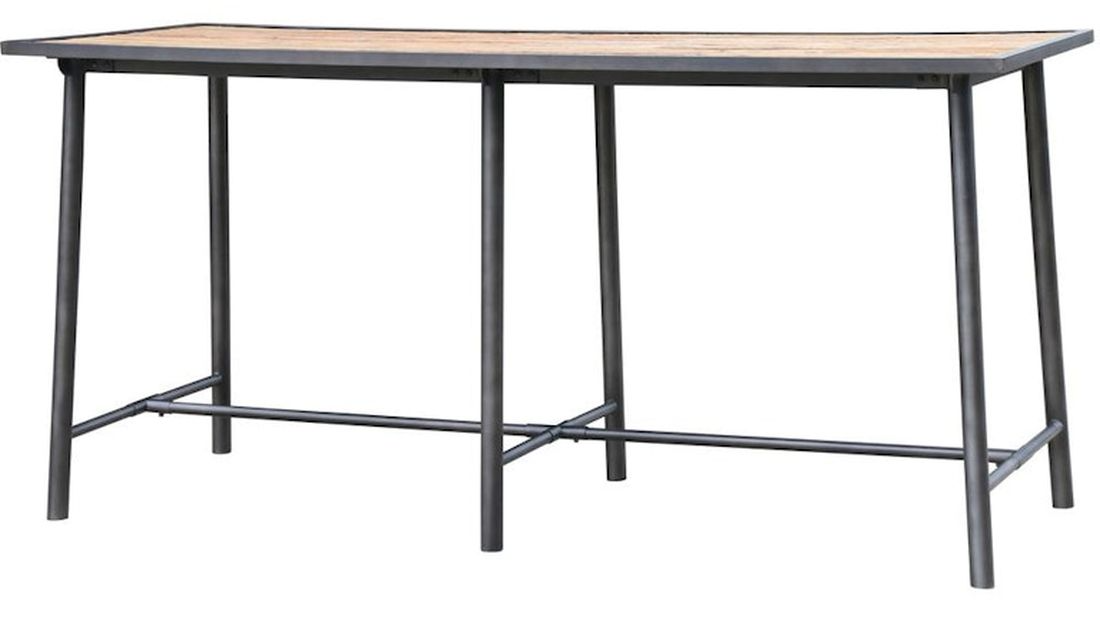 Freshly tailored shaping takes on a distinctively found feel. Slim iron legs of waxed black stand tall to support a rough-hewn oak top for a clean, casual pub-style look. This table will definitely add style to your space.Read More