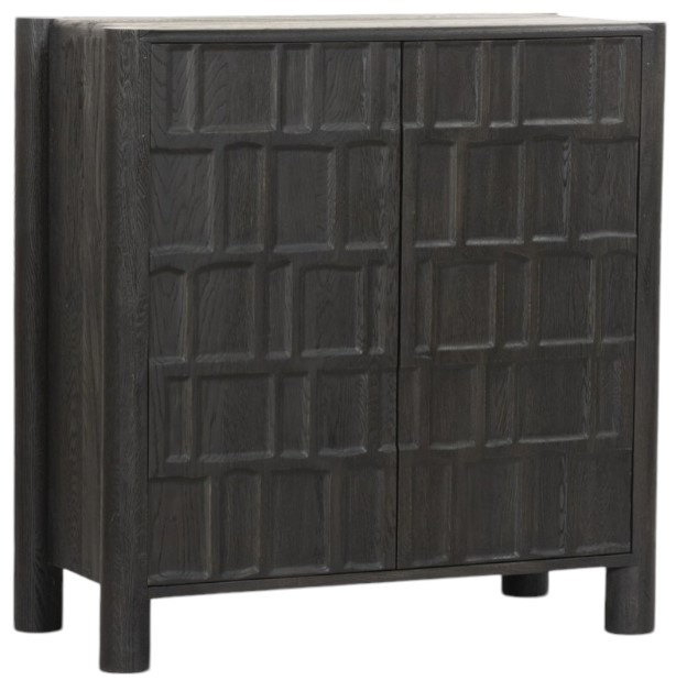 Made from solid oak, unique carving highlights the rich graining on this black-finished bar cabinet. Floor-to-top cylinder legs, plus plenty of interior storage for barware.Read More