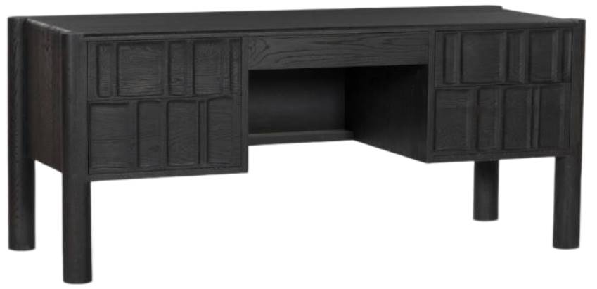 Grain and character variation within a solid oak finish give this desk organic visual interest. Full-width carved panel on opposite sides add depth, while a sleek pencil drawer for easy storage. Floor-to-top cylinder legs give a primitive look that balances the movement of the wood pattern.Read More
