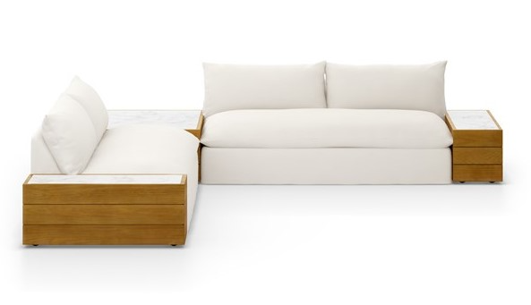 A modern essential for outdoor with a casual look to channel relaxed California lounging. Slipcovers with a knife-edge detail. The corner coffee table and end tables made of FSC-certified teak offer entertainment ease. Covered in 100% olefin, known for its UV-resistant, water-repellent and quick-drying abilities.Read More