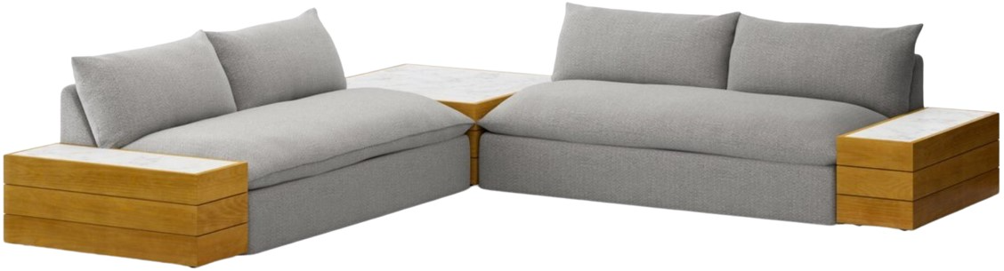 A modern essential for outdoor with a casual look to channel relaxed California lounging. Slipcovers with a knife-edge detail offer a simplified look that prioritizes comfort and practicality. The corner coffee table and end tables made of FSC-certified teak offer entertainment ease. Covered in 100% olefin, known for its UV-resistant, water-repellent and quick-drying abilities.Read More