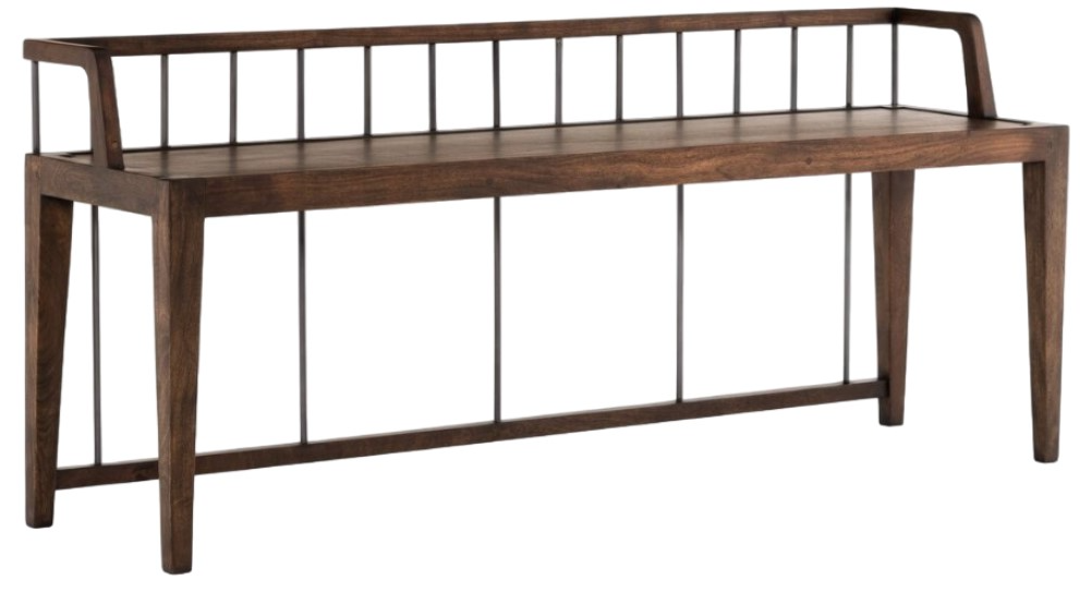 Traditional rustic meets modern industrial. Pecan-finished mango and slim, sleek iron fuse for a versatile look that moves between styles with ease. Its versatile style and durable construction make it an ideal addition for both seating and accent purposes in various settings.Read More