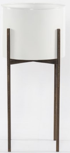 Freshen up your garden with this new planter form Four Hands. Slim legs of weathered brass-finished iron support an inset planter of glossy white iron. Plastic plant liner recommended (not included). Great indoors or out.Read More