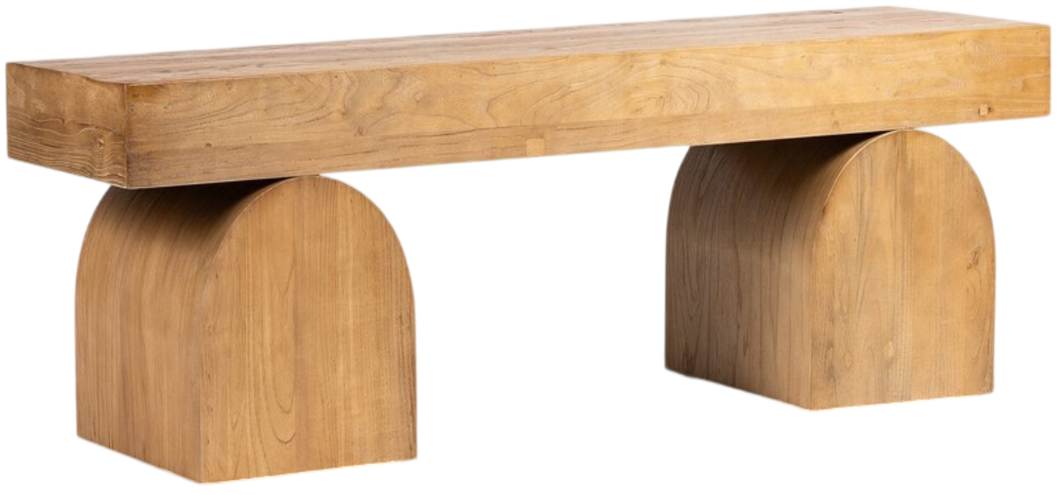 A study in shape. Handcrafted from solid reclaimed elm with visible knots and graining, chunky arched legs support clean bench-style seating. An ideal pop of modernity in the entryway and beyond.Read More