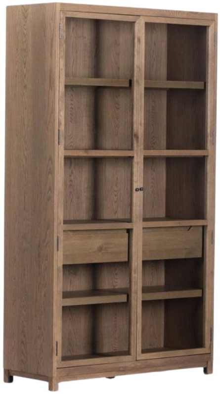 Monochromatic transparency. Natural drifted oak frames interior shelving. Glass doors allow for prized possessions to dazzle on full display while a spacious interior drawer adds an out of view storage option.Read More