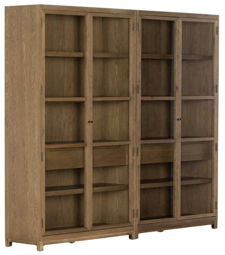 Classic and practical. Seamless driftwood oak exterior encases lighter interior shelving, creating a refined look. Glass doors showcase your cherished possessions in all their glory, while roomy interior drawers offer discreet storage solutions.Read More