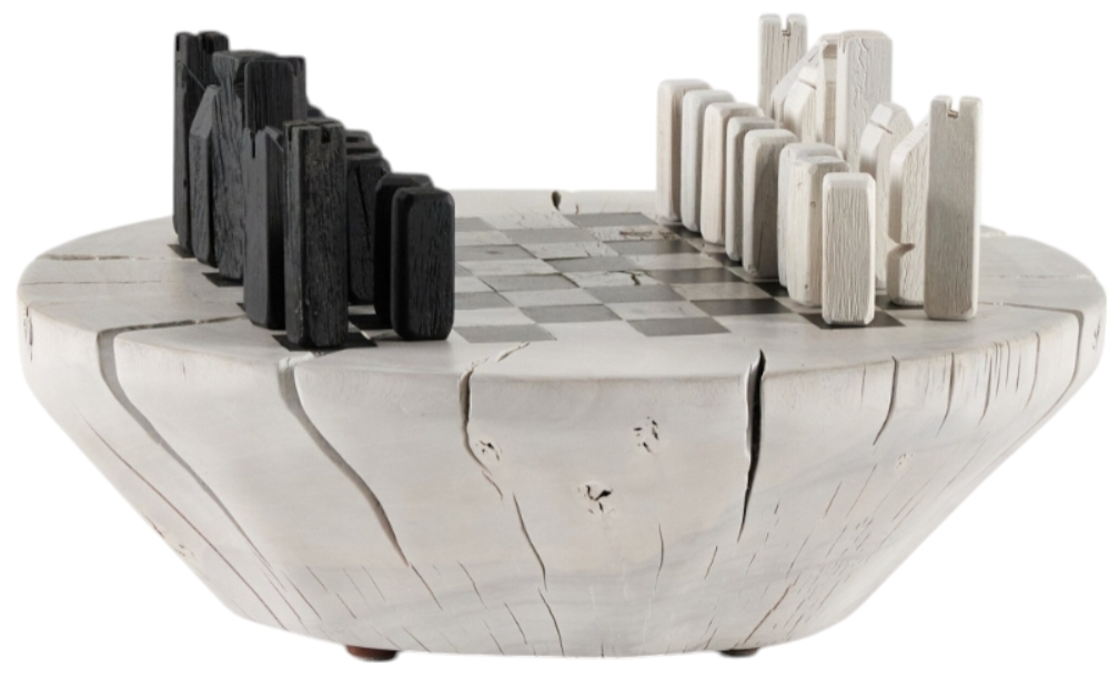 Make your move. Tabletop chess board and pieces carved from solid wood remnants at a family-run factory in Mexico to maximize every part of a naturally fallen tree and minimize waste.Read More