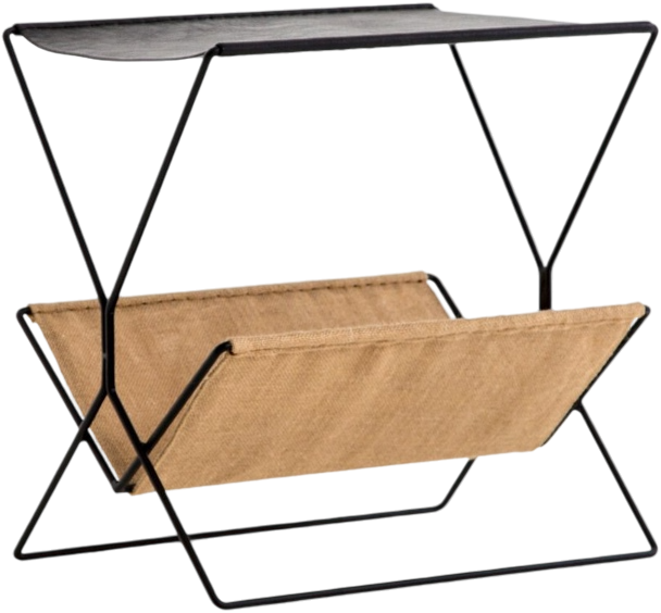 Modern materials refresh a simple, yet functional design. Black metal framing lends slim structure to natural hemp fabric and aged black leather. Lightweight and neutral-toned to suit any space.Read More