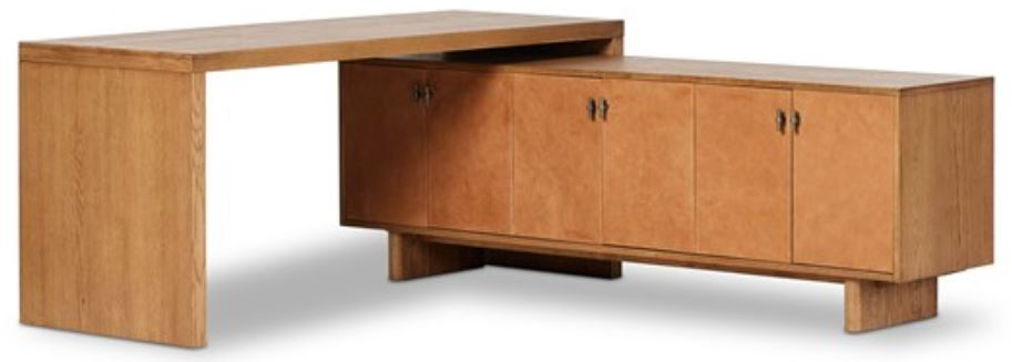 Reflect your unique style with a modular desk and matching media console of amber-finished oak and cognac top-grain leather. Arrange to suit your space, while adding plenty of storage space to the office.Read More
